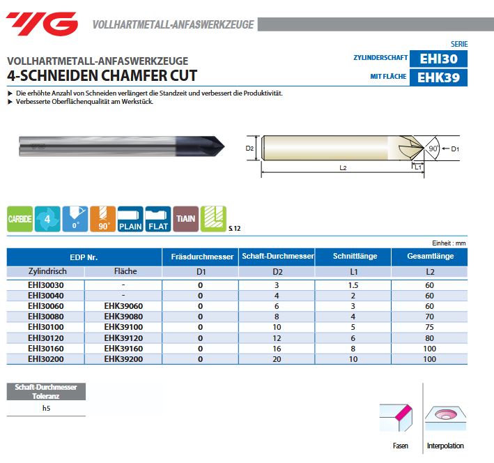 Produktinformationen "EHK39080 CARBIDE 4FL 0° CHAMFER CUT(90°)(TIALN)"